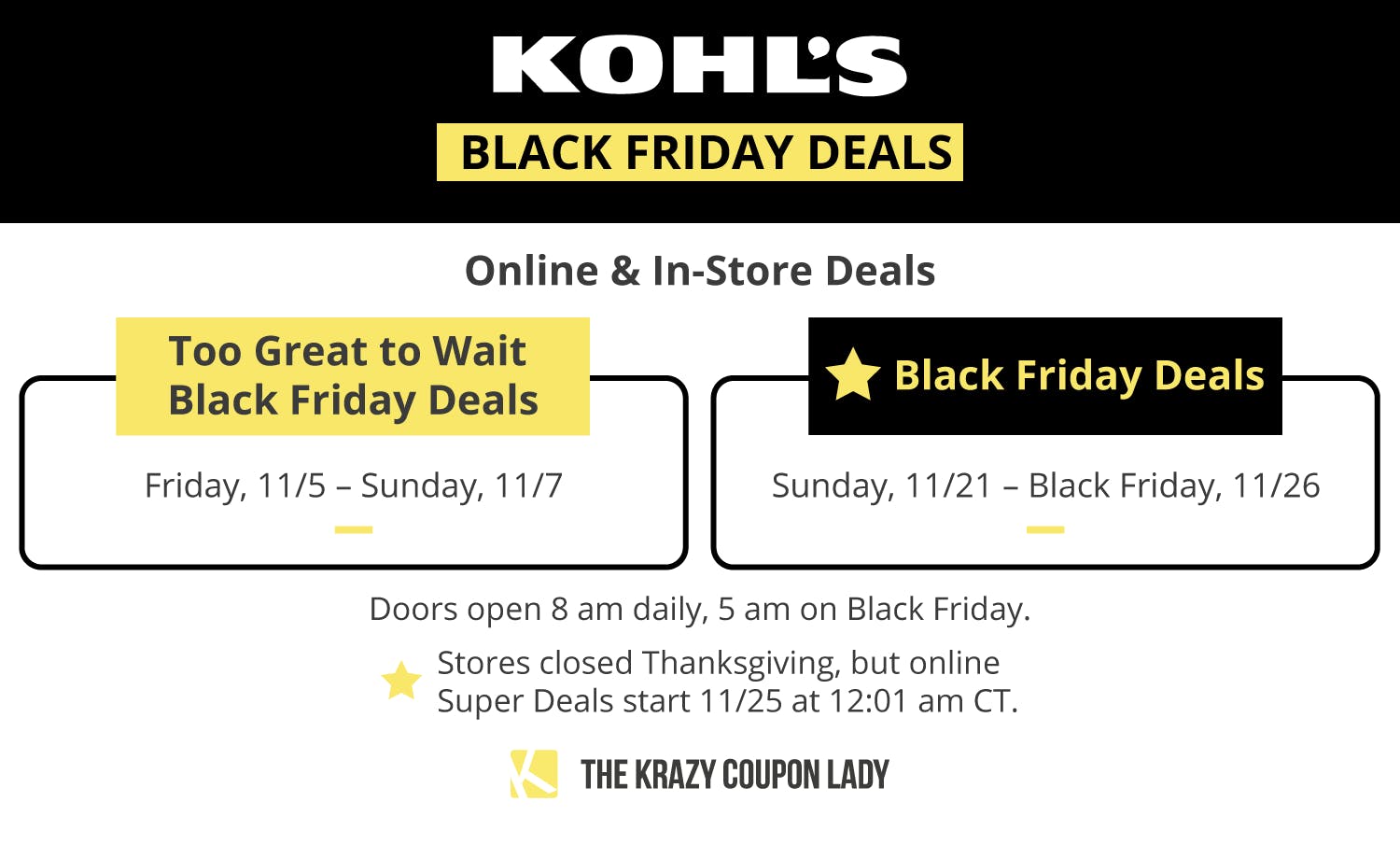 The Kohls 2020 Black Friday ad dropped at noon central time on Nov. 26 in-store and online. While stores will be closed on Thanksgiving Day Kohls will be hosting two days of super deals on Nov. Like Walmart Target Best Buy and others Kohls decided after receiving a positive response from last years closure on Thanksgiving Day as well as evolving preferences in how and when customers want to shop during the holiday season the retailer said in a news release on June 17.